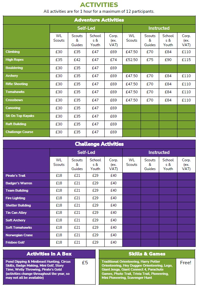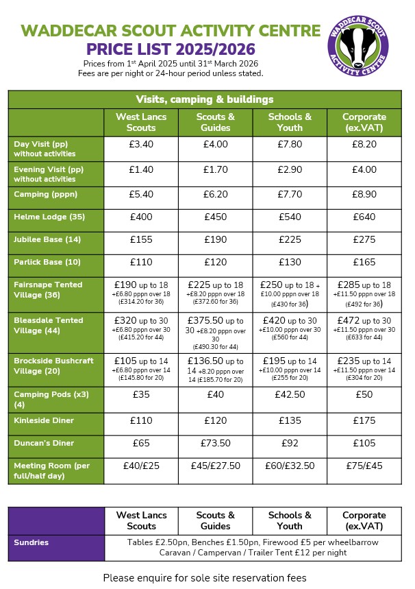 Here is the current price list with prices from 1st April 2025 until 31st March 2026.